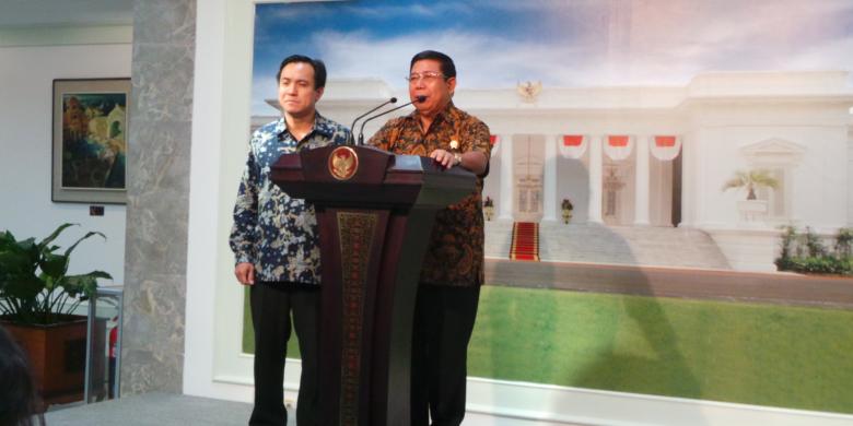 | Mensesneg Sudi Silalahi bersama juru bicara kepresidenan, Julian Pasha, Sabtu (1/2/2014) |